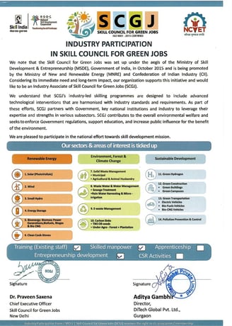 Exciting News! We are thrilled to announce the official signing of Memorandum of Understanding (MoU) between DiTech Global and the Skill Council for Green Jobs, established under the Ministry of Skill Development and Entrepreneurship (MSDE). 🤝 Our collective mission: advancing skill development 🛠️ and fostering local and global employment opportunities. 🌍 Together, we're shaping a brighter future through skills and innovation. Stay tuned for updates on this exciting journey! Aditya Gambhir