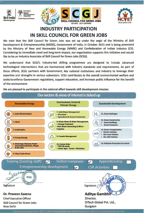 Memorandum of Understanding (MoU) between DiTech Global and the Skill Council for Green Jobs